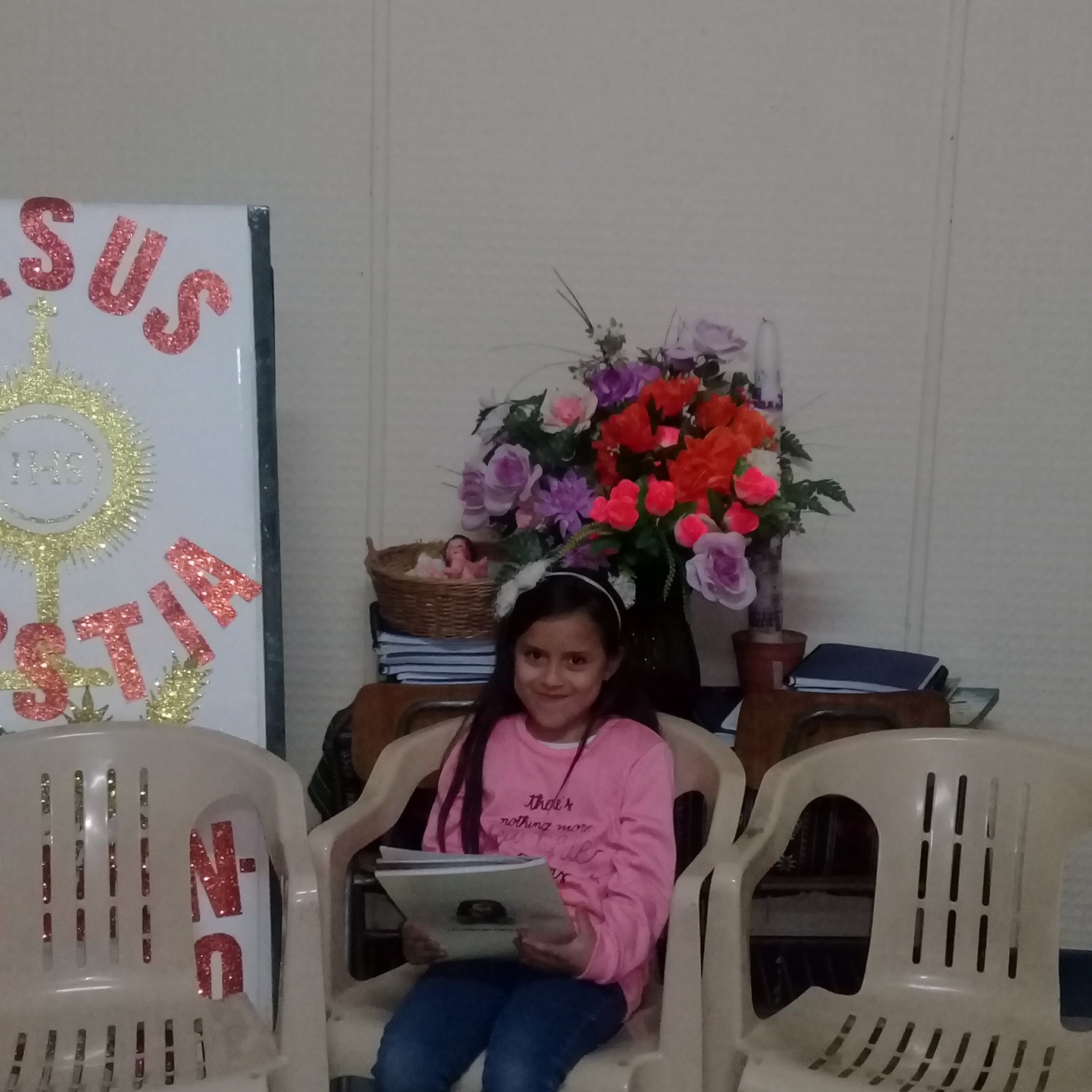 FELIPE ARROYO y mi hermana ALMA ARROYO, venimos 3 hermanos, dos ya hicimos la primera comunión , me gusta venir a saber de las biblia, y conocer y cantar en la Iglesia. Aprendimos mas de Dios, tenemos mas amigos y sabemos que Jesús nos ama.