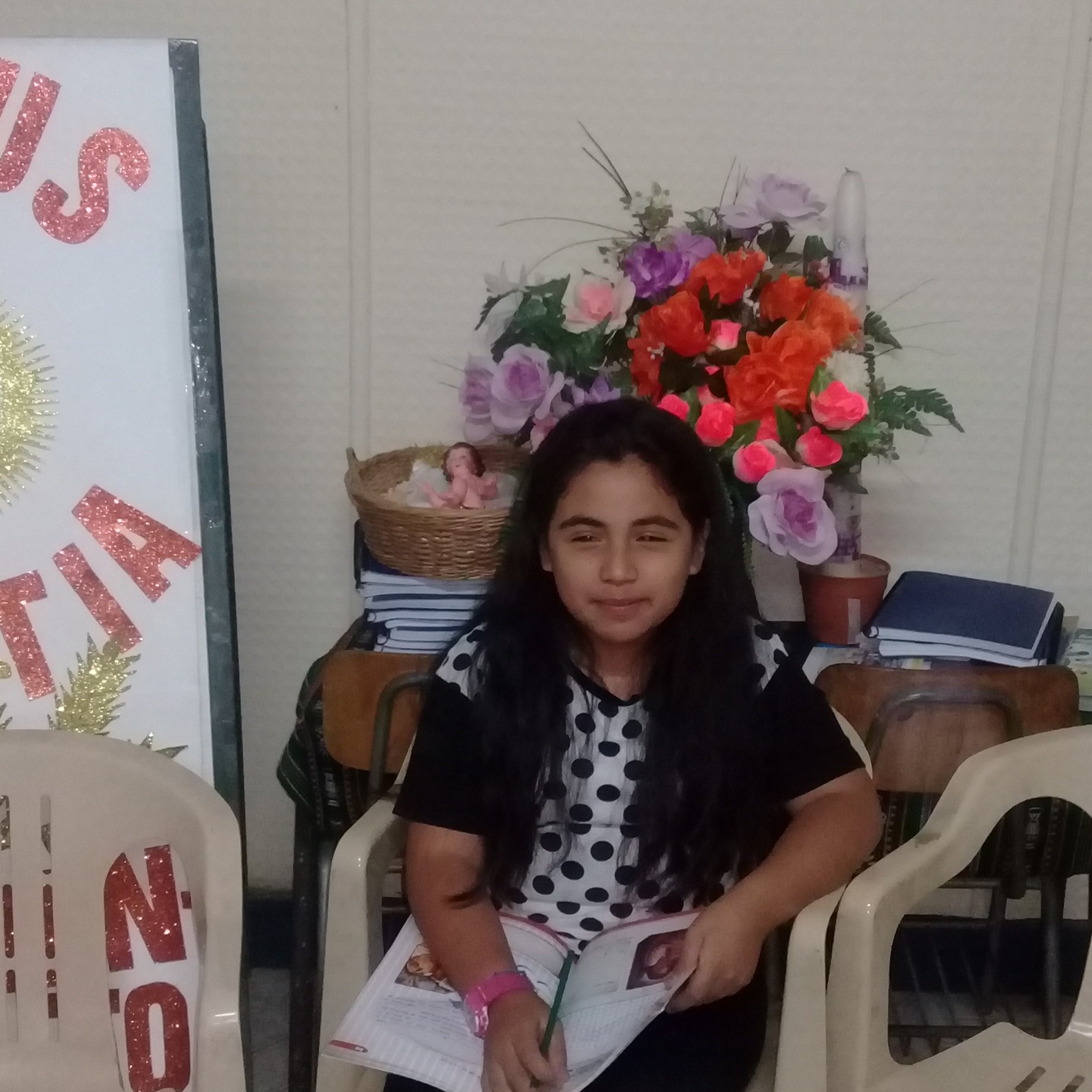 GIULIANNA CACERES: » Yo vengo para aprender de Jesús y de Dios y vengo porque me quiero bautizar, porque no me bauticé cuando era bebé y ahora quiero hacer la primera comunión.