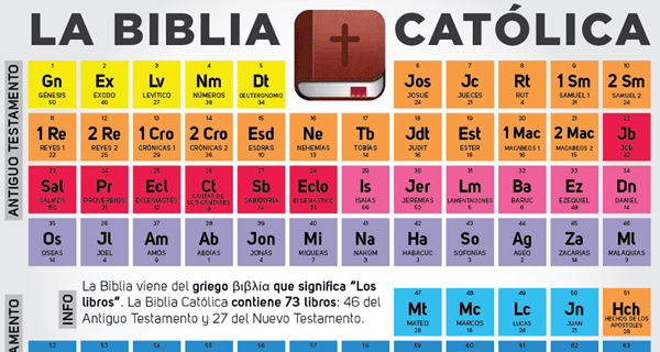 La Iglesia Católica recibe y venera como libros sagrados: 46 libros del Antiguo Testamento y 27 libros del Nuevo Testamento.