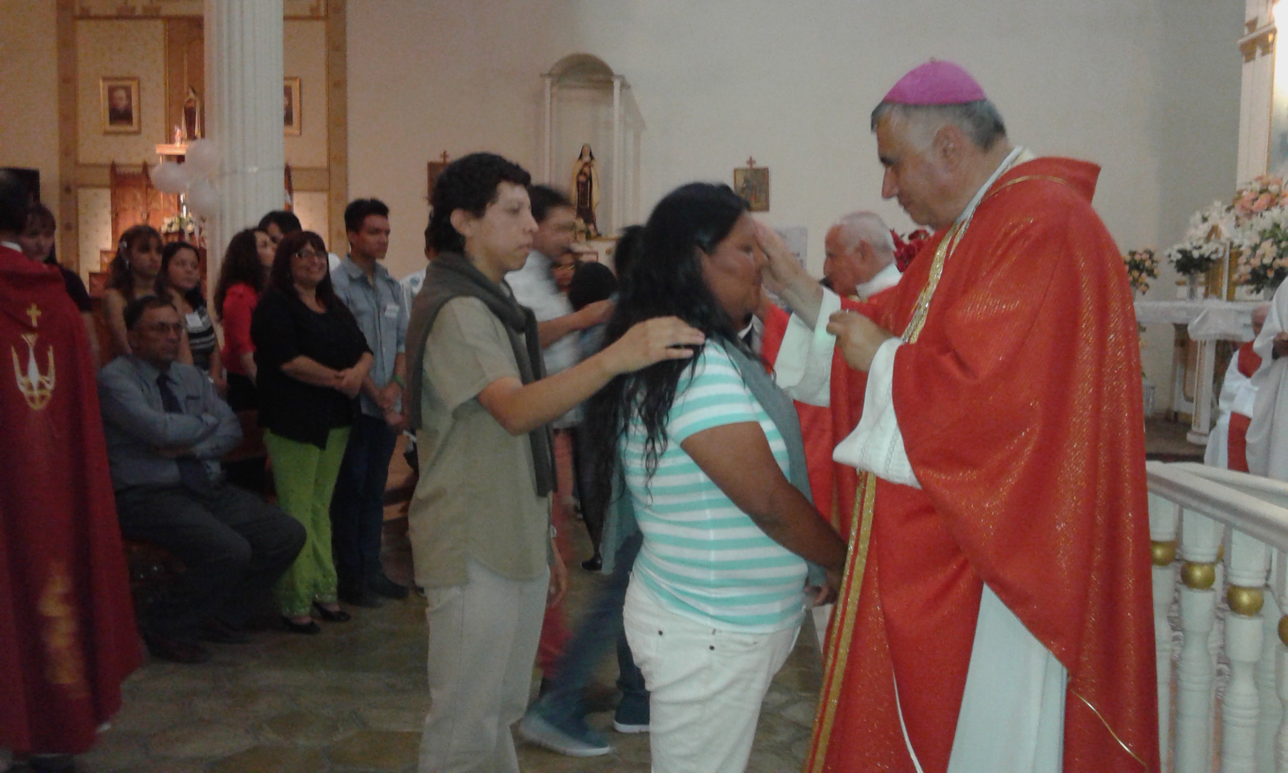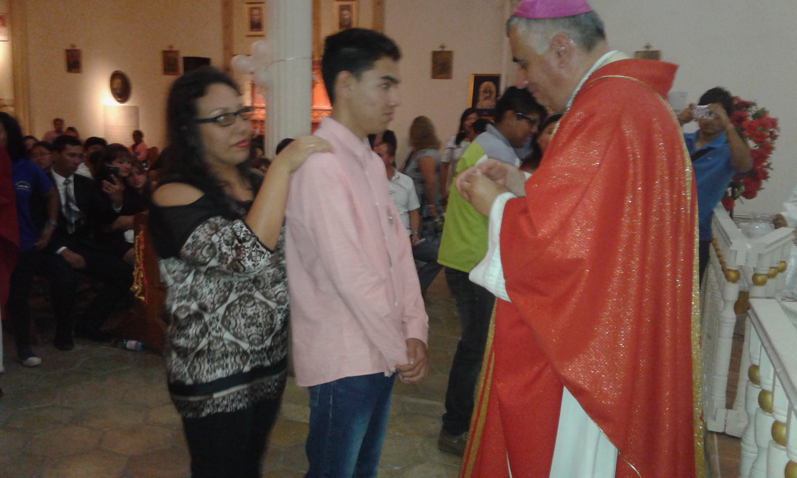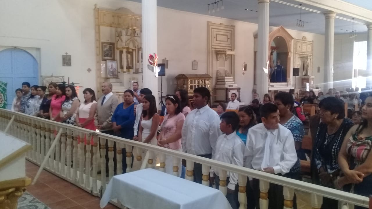 Nuestro Pastor Monseñor Guillermo Vera Soto, administra el sacramento de la Confirmación en la Parroquia San Andrés de Pica.