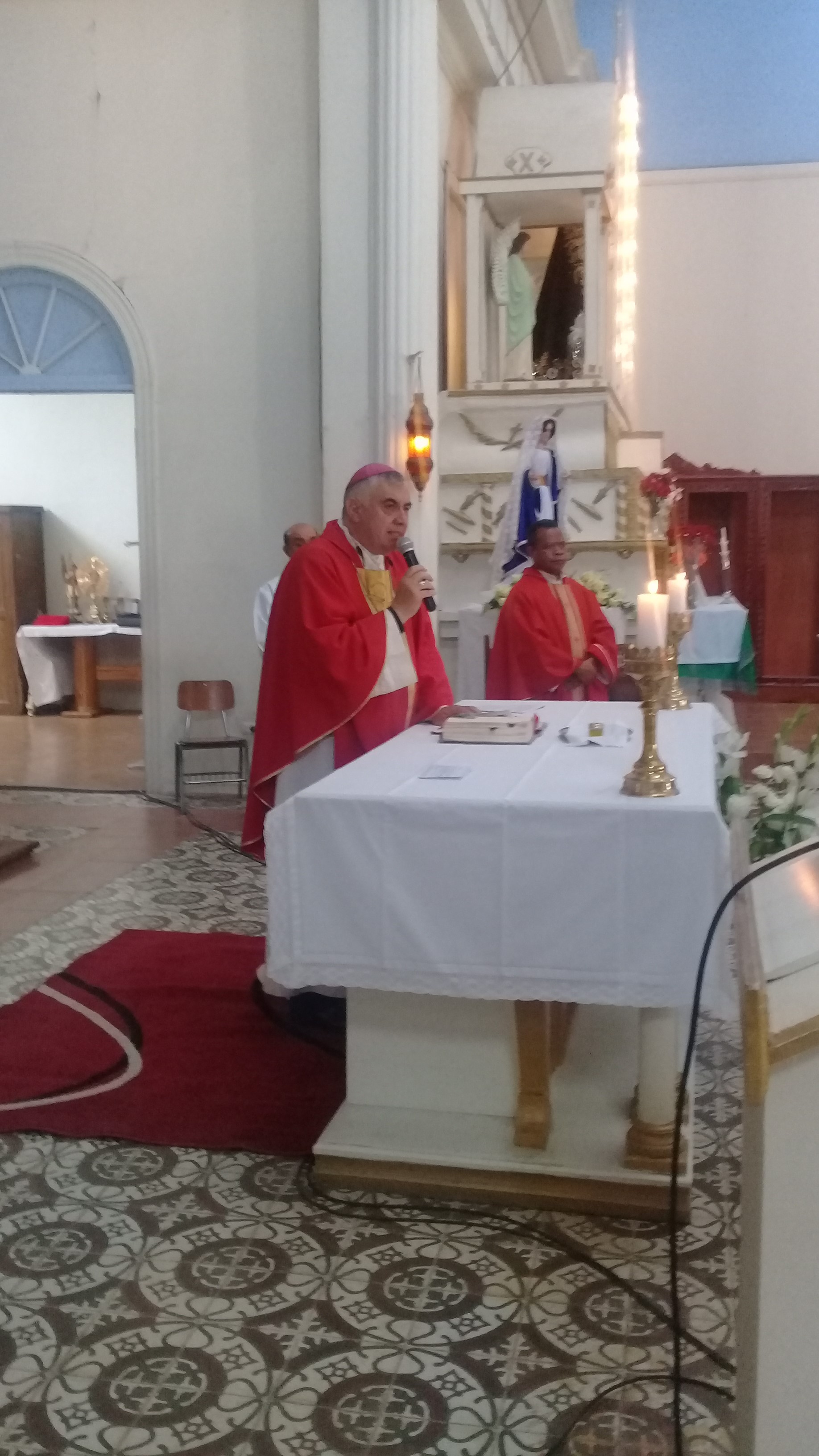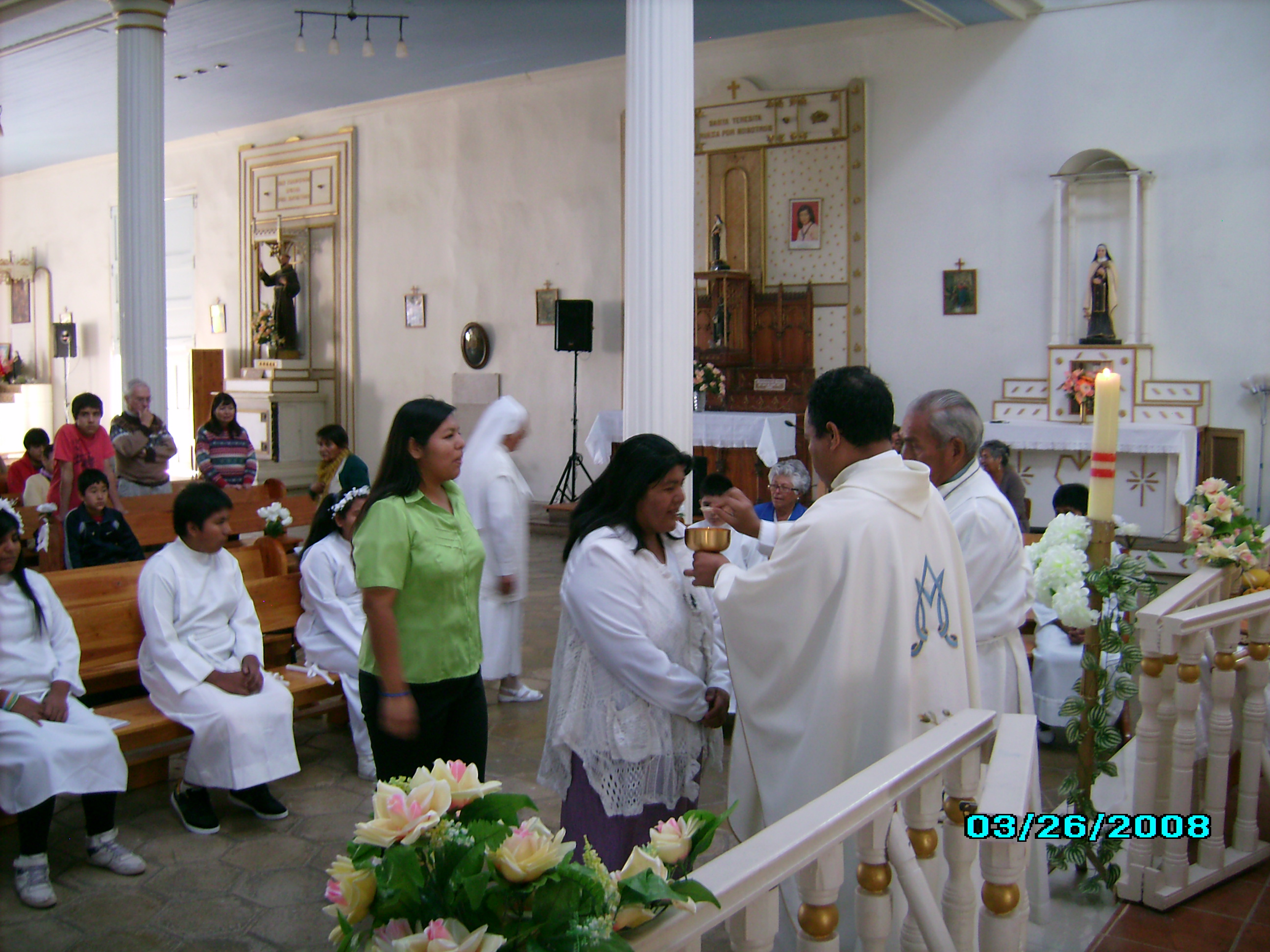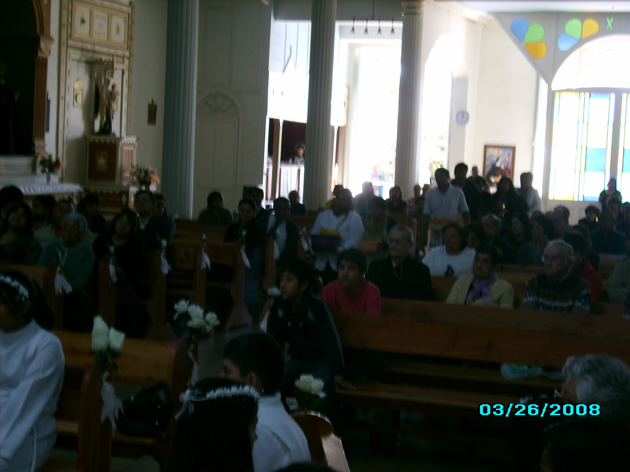 Nuestro Pastor Monseñor Guillermo Vera Soto, administra el sacramento de la Confirmación en la Parroquia San Andrés de Pica.