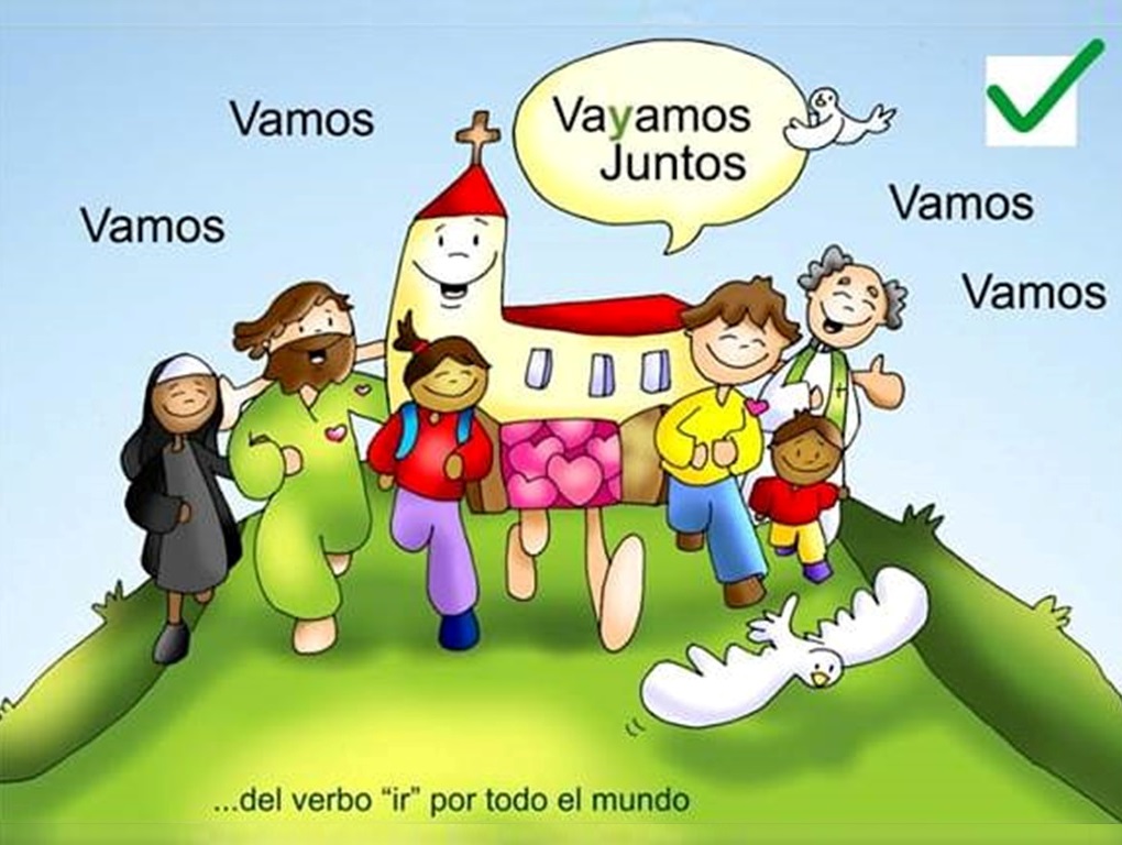 ¡Ahora sí podemos incluir el ingrediente de la sinodalidad! Sinodalidad, como quiso explicárnoslo el papa, significa «caminar juntos por el camino de Jesús», la senda que nos lleva a todos a la felicidad eterna. Si antes dijimos que debemos obedecer a los pastores aunque a veces no entendamos del todo el porqué de lo que nos mandan, ahora debemos agregar que todos somos responsables de ayudar al papa y los obispos en esta tarea de descubrir la voluntad de Dios. ¡No te asustes! (aunque dicho así sí que puede darte un poco de miedo… «descubrir lo que Dios quiere de todos nosotros como Iglesia»). Los pastores necesitan la ayuda de todos los bautizados para tomar las mejores decisiones para la Iglesia. Por eso estamos viviendo un tiempo en el que el papa ha pedido a todos los cristianos que le envíen sus ideas e inquietudes, aquello que les preocupa y también qué opinan de ciertos temas que son muy importantes para la vida de la Iglesia. ¡Comprenderás que siendo la Iglesia católica una familia de 1000 millones de personas ha sido necesario organizar muy bien todo este cuestionario! En las parroquias y grupos se está trabajando mucho para dar respuesta a las preguntas que se han planteado desde el Vaticano. Después, se enviarán las conclusiones a las diócesis, para que hagan un resumen. Y estos resúmenes se enviarán, a continuación, al santo padre. Por eso, ¡que no te sorprenda escuchar a tus padres o conocidos decir que tienen «reunión por el sínodo»!